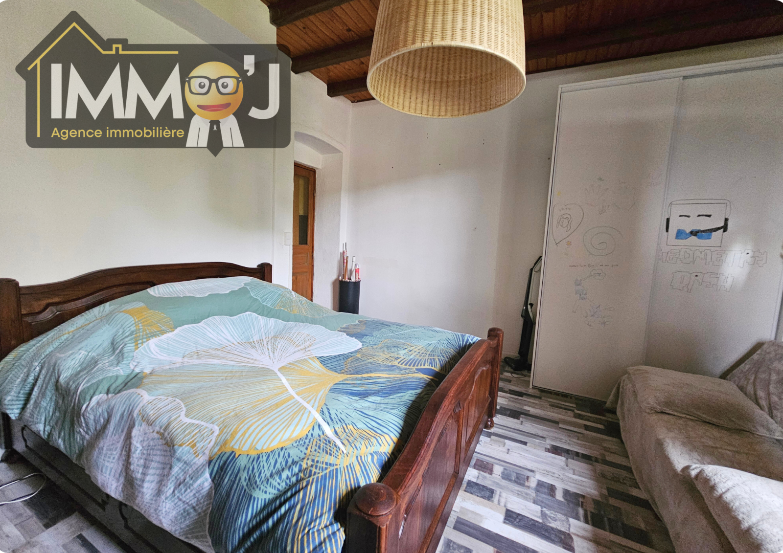 Retournons dans l'entrée pour le WC séparé à gauche et pour reJoindre une chambre lumineuse de 25 m² sur le même niveau.