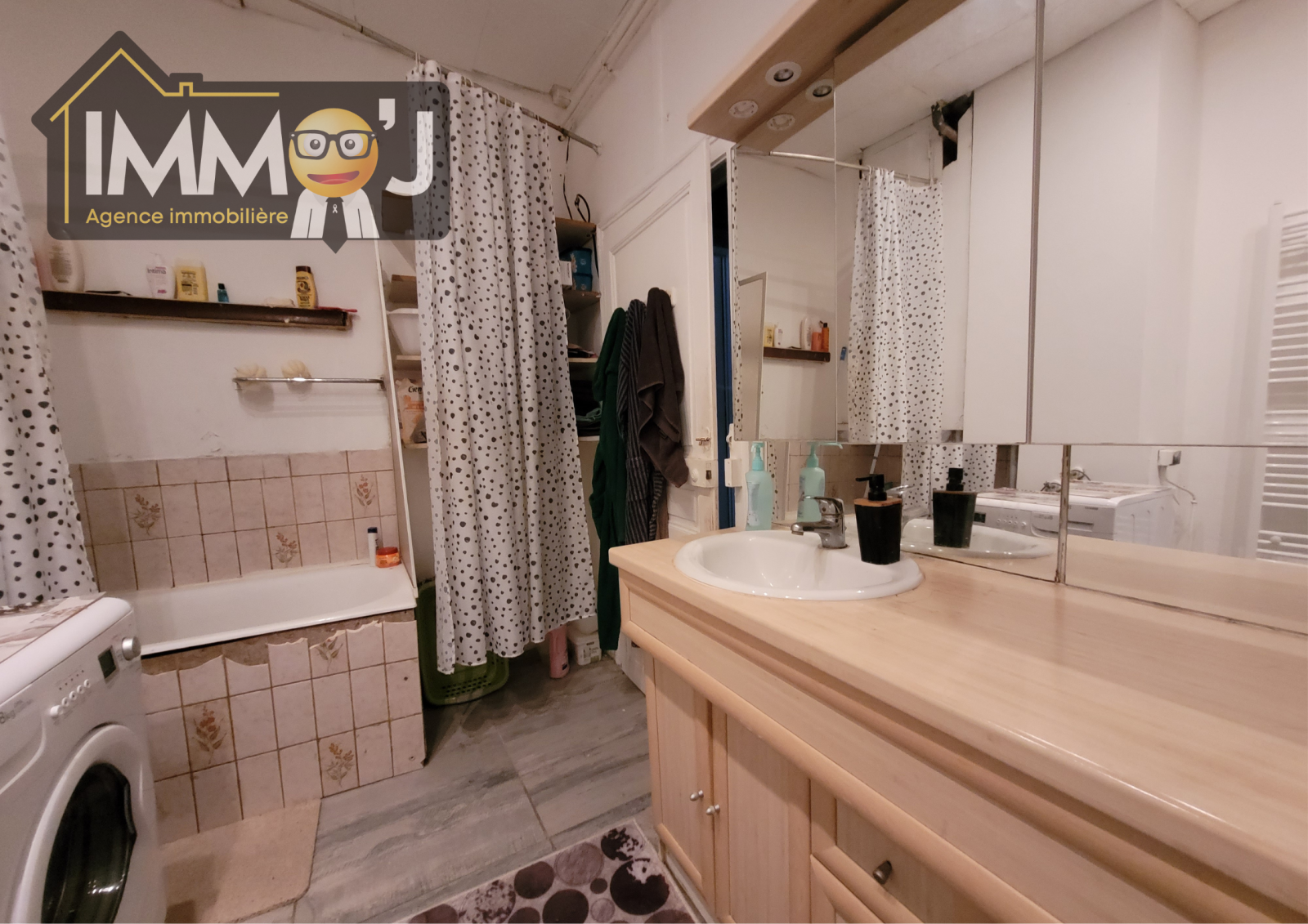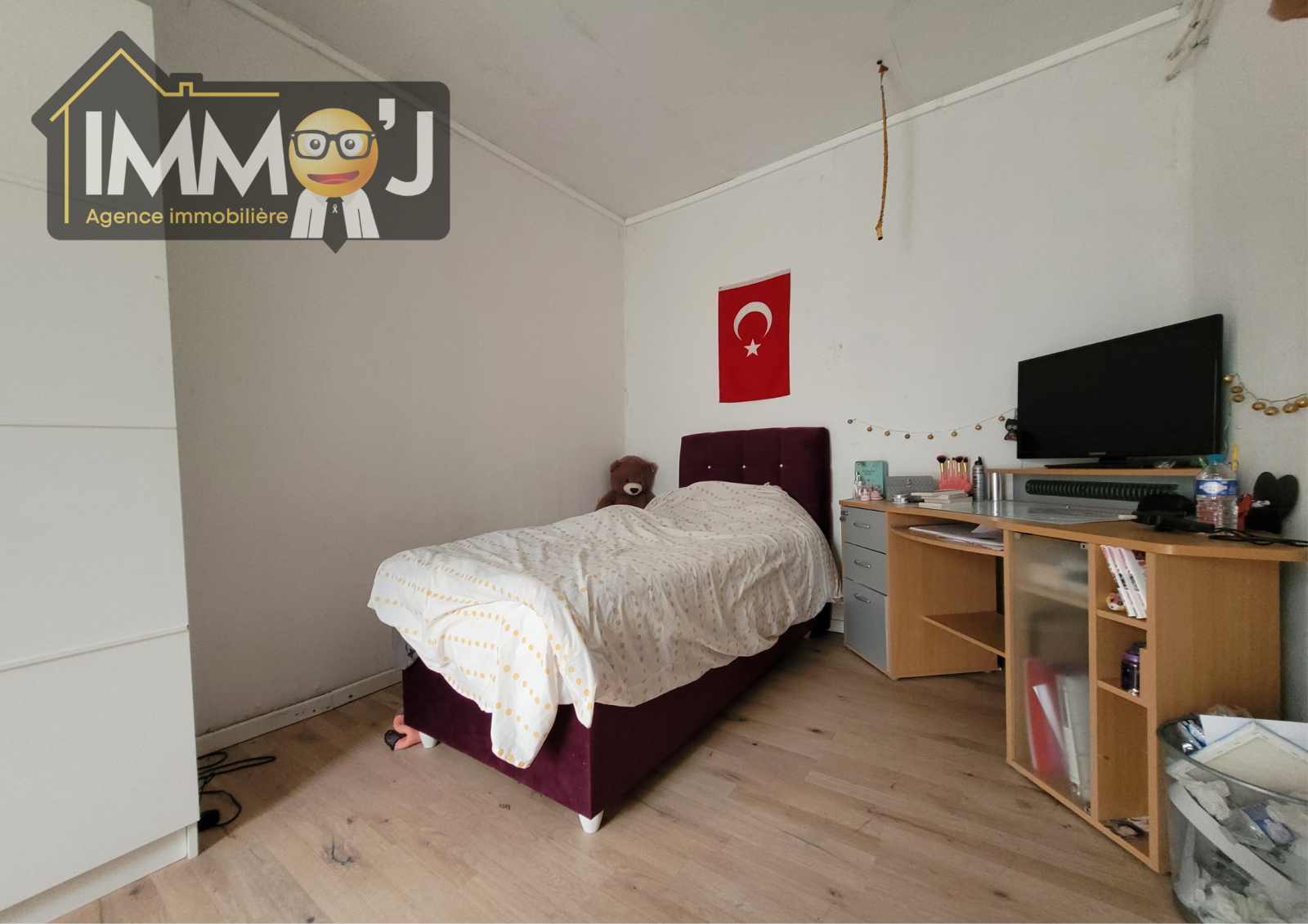 Allez, revenons à l'intérieur à l'appartement, en retraversant cuisine et séjour, voici à votre gauche, une 3ème chambre de 12 m² et de l'autre côté on retrouve la salle de bains avec WC qui nécessitera rafraîchissements.