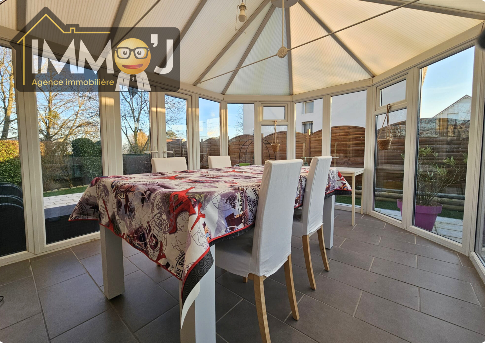 On y va? Je vous propose de me suivre et de commencer par une entrée qui dessert directement la cuisine ouverte sur la pièce de vie. Vous aimeriez avoir un séJour encore plus grand? Et bien, Justement ça tombe bien puisqu'une véranda vous offre 14m² supplémentaire avec en prime un accès sur le Jardin. Je vous laisse apprécier la vue sur les champs à l'arrière.