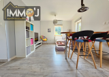 Avant de commencer, Je vous précise que tout a été entièrement rénové dans cette Jolie maison (Isolation, électricité, climatisation, déco : TOUT). Aller assez parlé, on y va, Je vous laisse tout d'abord accéder à la véranda qui fait office d'entrée et qui sera bien pratique pour ranger vos chaussures. Juste derrière, on découvre une très belle cuisine américaine, entièrement équipée ouverte sur un séJour rénové avec goût. On arrive Juste sur la droite sur la chambre qui dispose d'un accès à la salle d'eau optimisée, flambant neuve également. De l'autre côté, on a des WC, séparés bien évidemment.